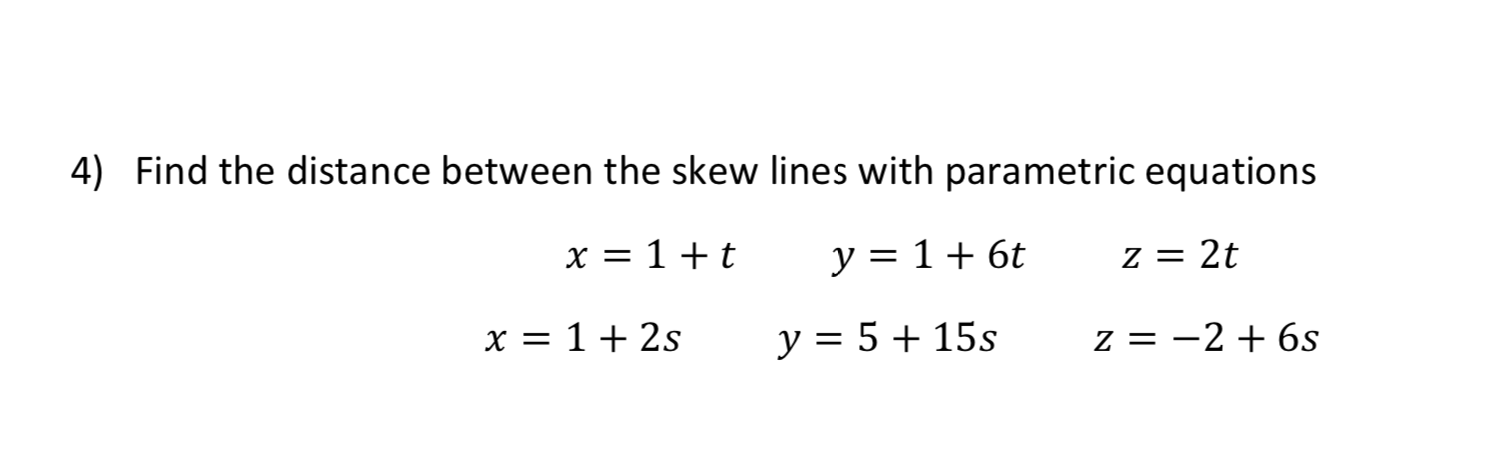| Read Solved Find The Distance Between The Skew Lines With Parametric Equations X 1 T Y 1 6t Z 2t And X 1 2 |